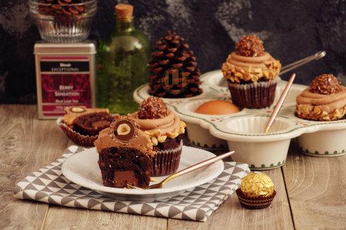 巧克力榛子杯子蛋糕,这款蛋糕口感丰富,费列罗多层次的口感自然不用多说。香滑的奶油霜结合香脆的榛子与绵密的蛋糕和浓郁的Nutella酱一同入口,完美的与费列罗形成了口感和味道上的呼应。这不快到虐狗节啊不对,是情人节了么~情人节巧克力怎么能缺席呢?