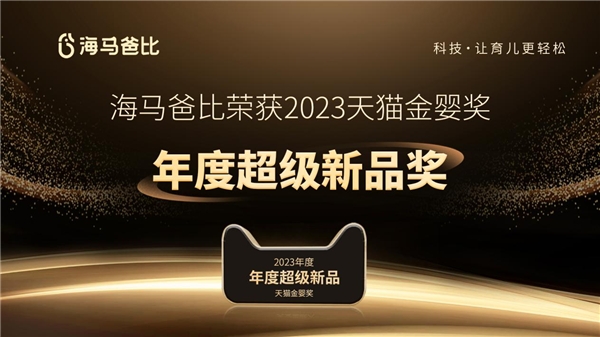 4月25日,2023淘宝天猫母婴亲子行业峰会在杭州举行,海马爸比斩获天猫金婴奖“年度超级新品奖”,成为天猫平台母婴品类新标杆。天猫金婴奖是天猫联合多家权威机构对母婴行业推出的重要奖项,旨在致敬过去一年中母婴行业内